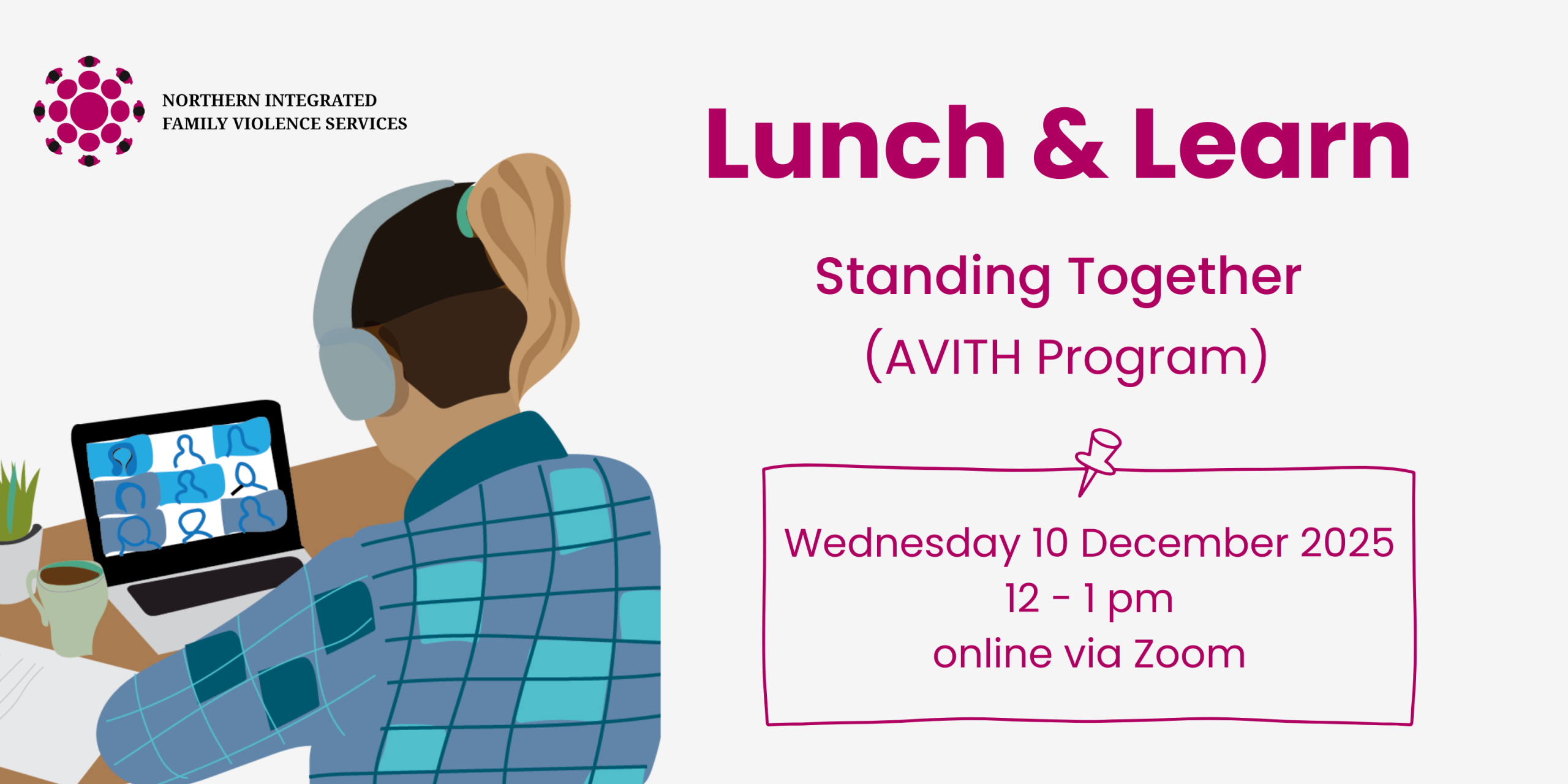 The final Northern Integrated Family Violence Services Lunch & Learn for 2025 will be held on Wednesday 10 December at 12 pm!